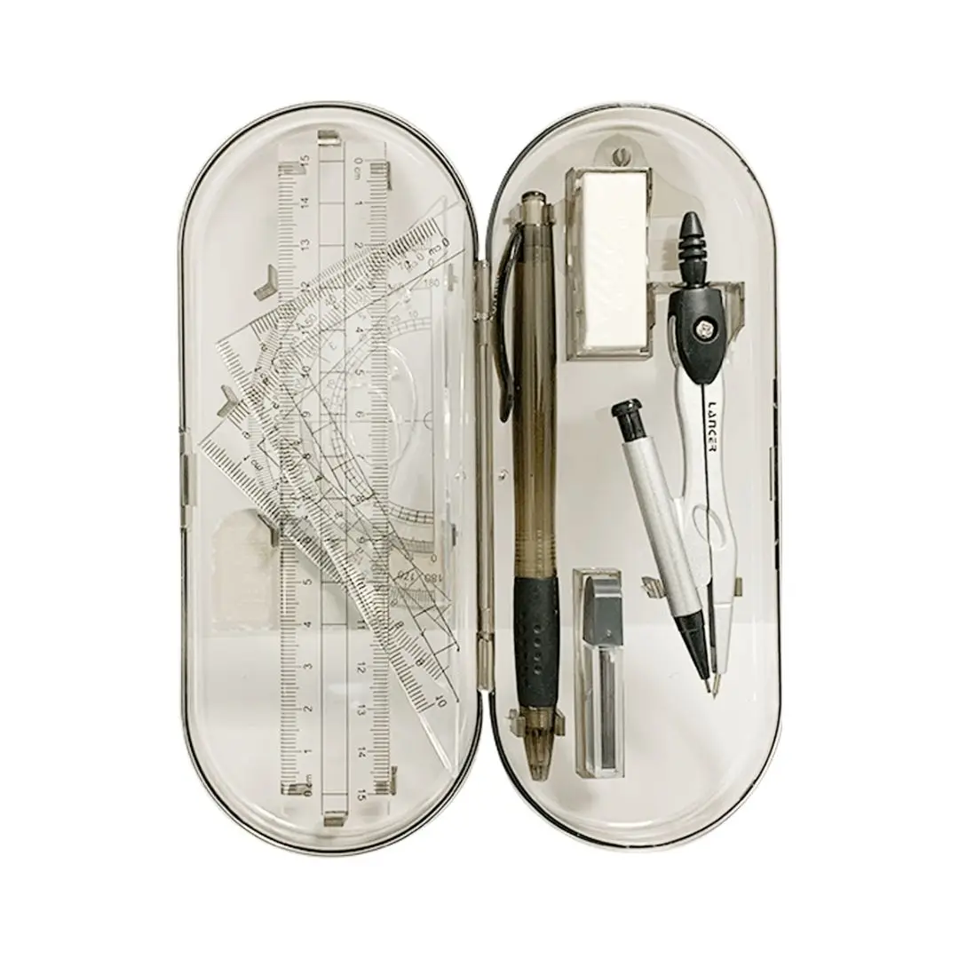 El kit de Compás + Lapicero + Borrador + Repuesto de mina Lancer es un conjunto completo diseñado para facilitar trabajos de dibujo técnico y artístico.