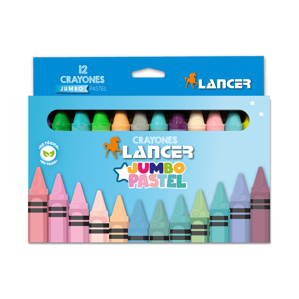 Los Crayones Jumbo Lancer de 12 Colores Pasteles son perfectos para añadir un toque suave y delicado a tus dibujos y manualidades.