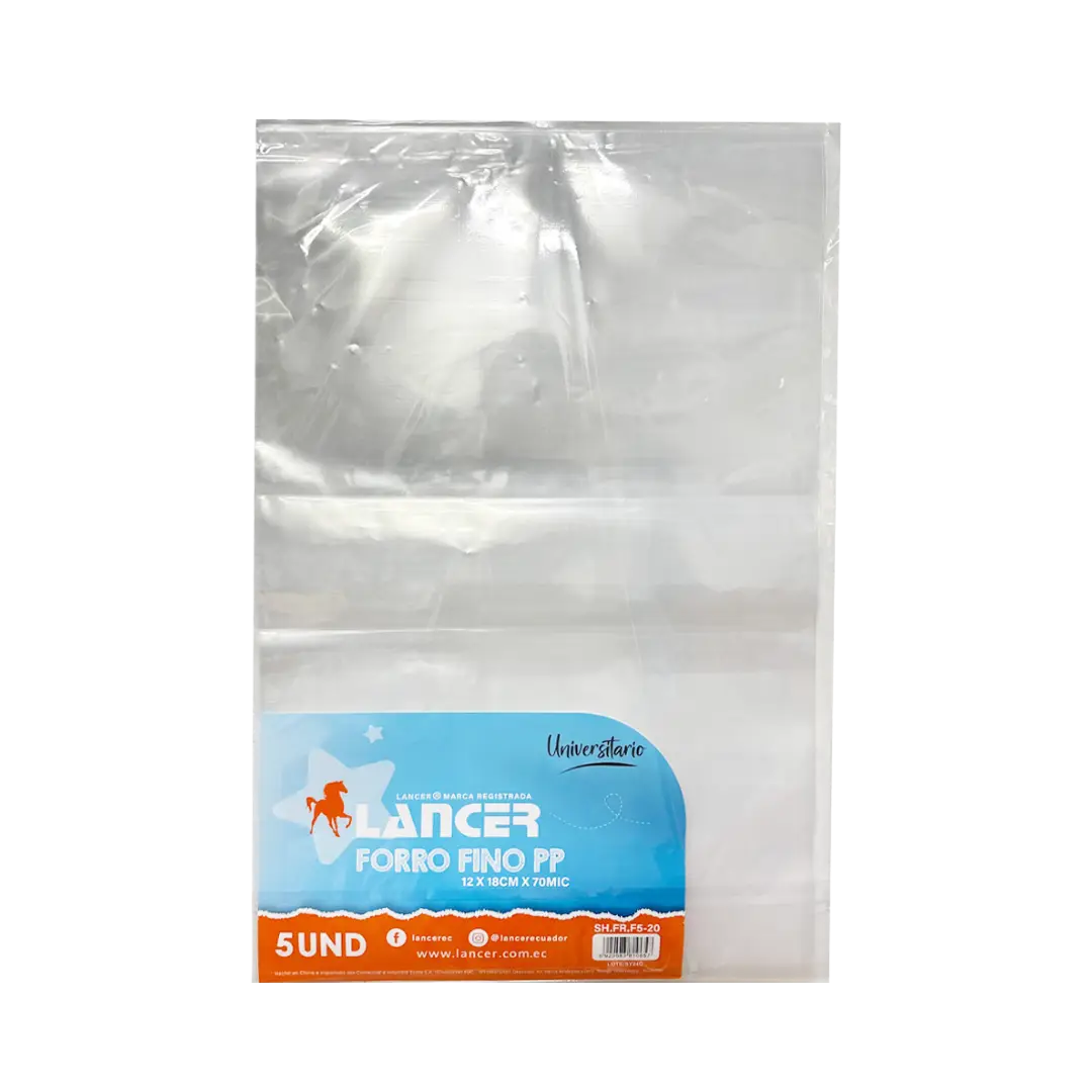 Protege tus documentos, cuadernos y materiales de estudio con el Forro Lancer Transparente Universitario 12x18cm 70MIC, un producto diseñado para brindar resistencia, durabilidad y una presentación impecable.