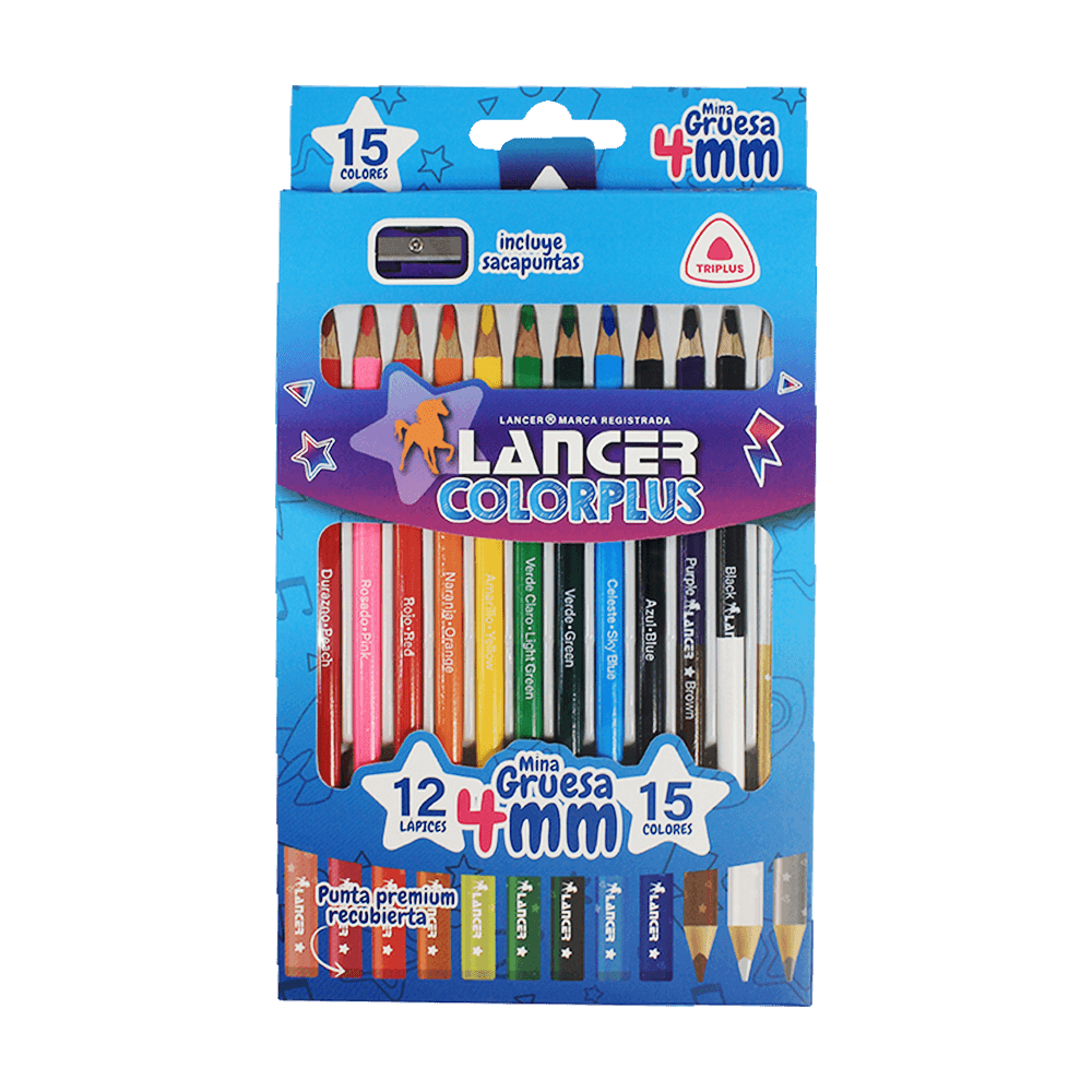 Colorplus 12 Lápices, 15 colores ya que cuenta con 3 lápices doble punta.