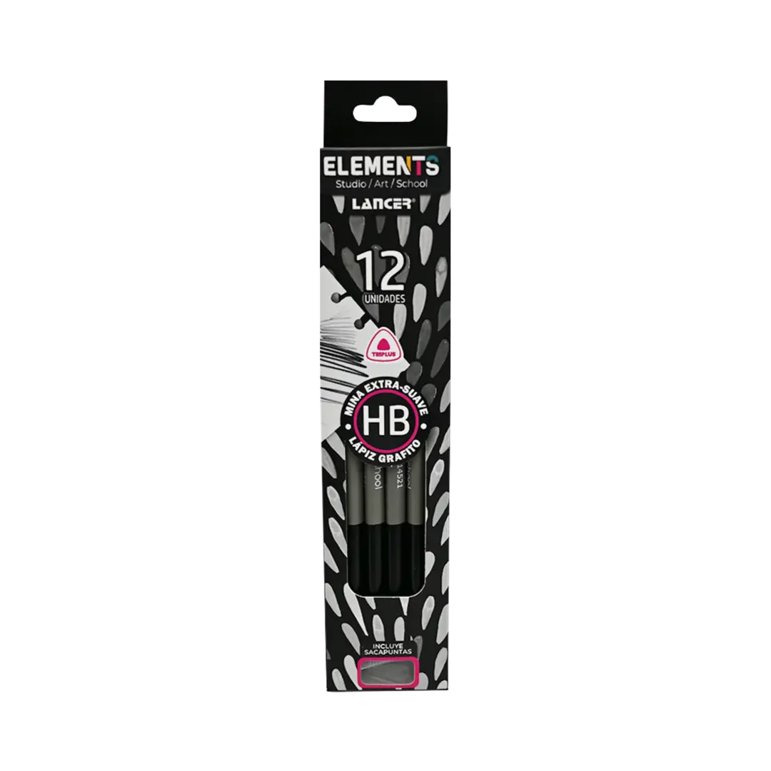 Lápiz Lancer elements grafito hb x12 + sacapunta – triangular