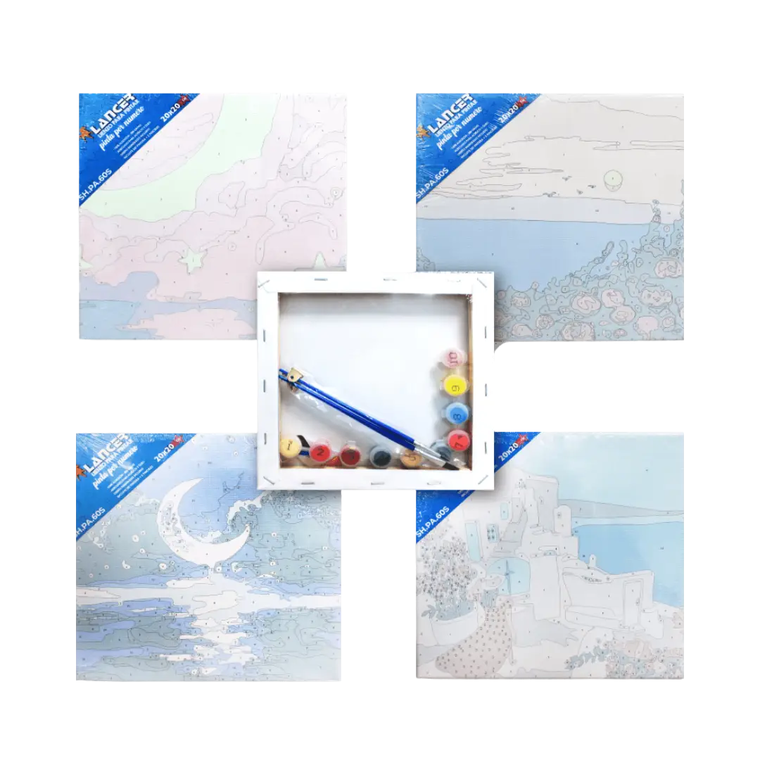 Lienzo Para Pintar Por Número Con Diseños 20x20cm + 12 Pinturas y 2 pinceles Lancer