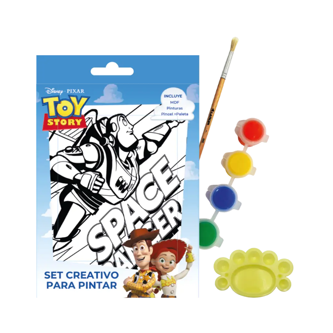 Vive una experiencia creativa única con el Set Creativo Disney para Pintar Toy Story Lancer 30x40cm. Incluye lámina MDF, pinturas, pincel y paleta para que niños y fanáticos de Pixar den color a Woody, Buzz Lightyear y sus amigos. Ideal para desarrollar la creatividad, relajarse y decorar con arte. 🎨